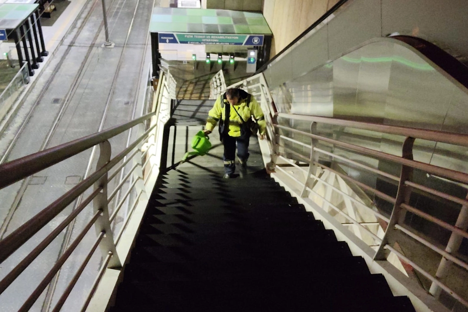 KOCAELİ (İGFA) - Park ve Bahçeler Dairesi Başkanlığı ekipleri, don ve buzlanmaya karşı önleyici tedbirleri titizlikle uyguluyor. Bu kapsamda, üst geçitlerin yüzeylerini daha güvenli hale getirmek için sıvı formda özel bir kimyasal solüsyon kullanılıyor.
