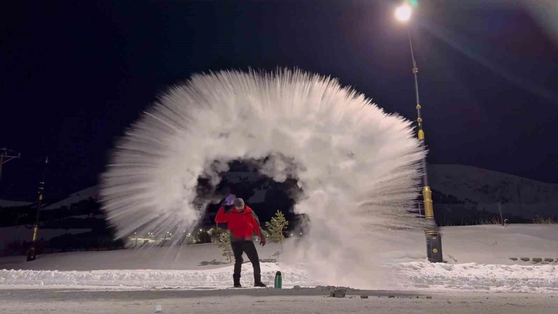 Erzurum'da havaların aşırı soğumasıyla birlikte sosyal medyada yeni ve ilginç bir akım başladı. Vatandaşlar, evlerinden aldıkları kaynar suyu sokaklara çıkarak havaya serpti ve suyun anında donarak oluşturduğu muhteşem görüntüleri kaydetti. Bu etkileyici görsel şölen, kısa sürede sosyal medya platformlarında viral hale geldi.
