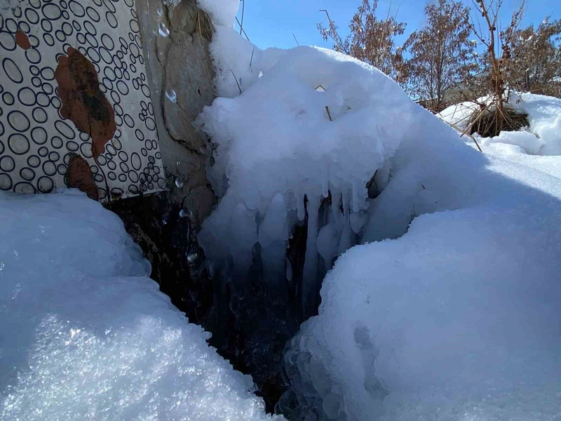 Ağrı’da hava sıcaklıklarının sıfırın altında seyretmesi hayatı olumsuz etkilerken, kentte su kaynakları ve çeşmeler buz tuttu. Kar örtüsünün kalınlaştığı bölgelerde buz sarkıtları oluştu.
