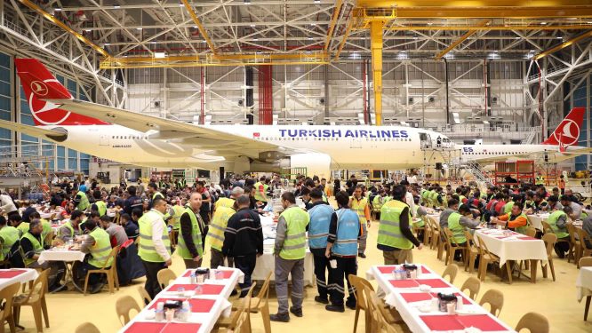 Türk Hava Yolları Yönetim Kurulu ve İcra Komitesi Başkanı Ahmet Bolat, Ramazan ayı dolayısıyla iştirak şirketlerinden TGS Yer Hizmetleri yöneticileri ve çalışanlarıyla iftar programında bir araya geldi. İstanbul Havalimanı’nda düz