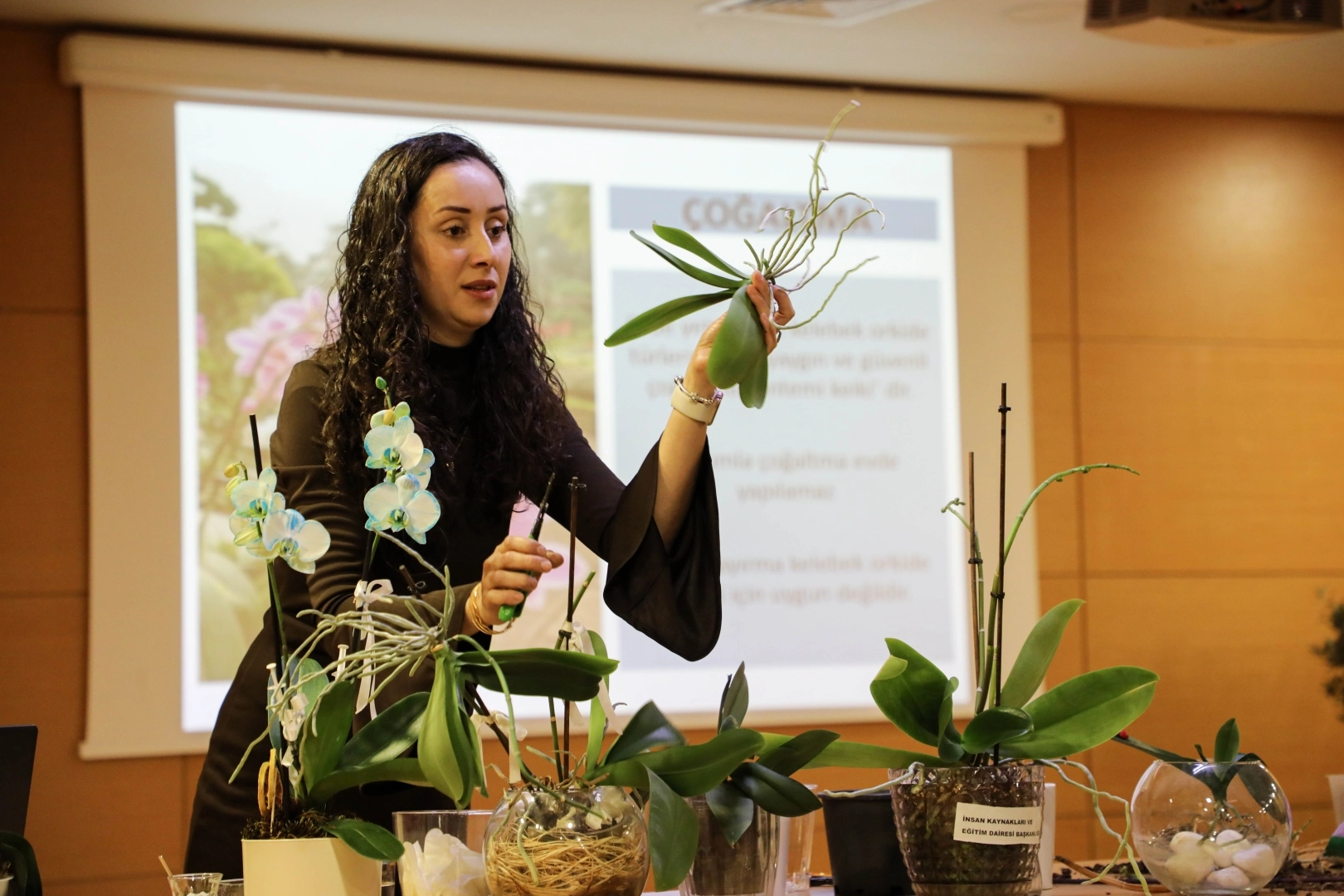 Büyükşehir Belediyesi Ana Hizmet Binası'nda gerçekleştirilen eğitimde, orkidelerin sağlıklı gelişimi için dikkat edilmesi gereken temel bakım süreçleri ayrıntılı şekilde ele alındı.