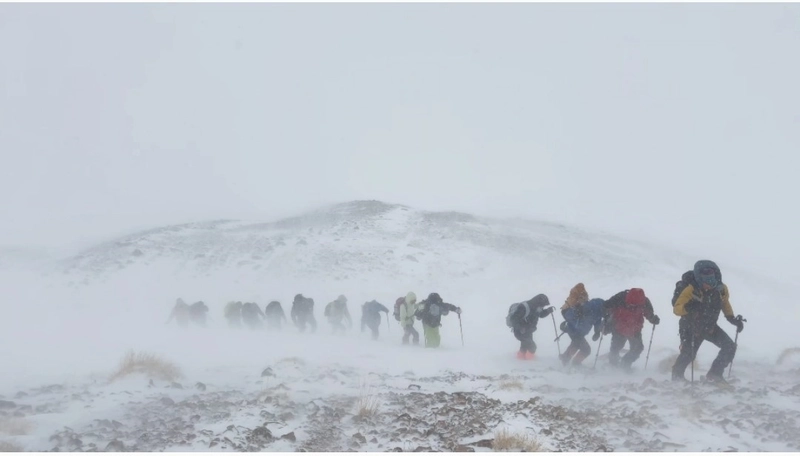 Van'ın 3 bin 537 rakımlı Artos Dağı'nda etkili olan şiddetli tipi ve fırtına, 17 kişilik dağcı ekibinin planlanan kış tırmanışını engelledi. Görüş mesafesinin sıfıra inmesi ve artan riskler nedeniyle ekip, güvenlik gerekçesiyle ge