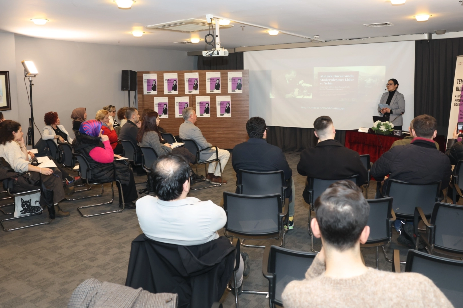BURSA (İGFA) - Nilüfer Belediyesi’nin “Tematik Buluşmalar” söyleşisinin bu ayki konuğu, Bursa Uludağ Üniversitesi (BUÜ) Tarih Bölümü Öğretim Üyesi Doç. Dr. Hacer Karabağ Arslan oldu. Nazım Hikmet Kültürevi’nde düzenlenen “Atatürk Bursa’sında Modernleşme: Lider ve Şehir” başlıklı söyleşide Arslan, Atatürk’ün Bursa ziyaretlerinin arka planını ve kentin sosyal, ekonomik ve kültürel değişimini anlattı.