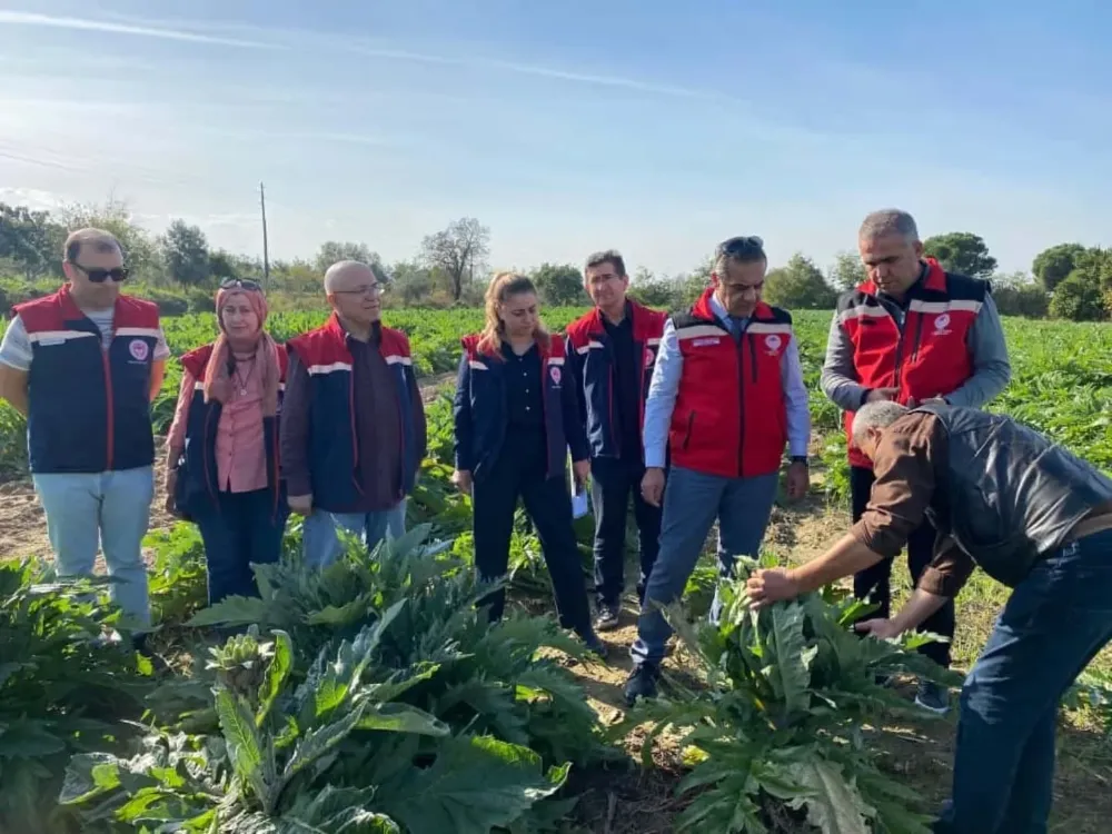 Bu kapsamda, Aydın İl Tarım ve Orman Müdürü Ayhan Temiz de Efeler ilçesi Gölhisar Mahallesi’ndeki üretici Mehmet Karagöz’e ait 5 dekarlık enginar tarlasında incelemelerde bulundu. İncelemeler sırasında enginar üretimi, hastalık ve zararlılarla mücadele, verim durumu ve pazarlama süreçlerine ilişkin üretici ile karşılıklı değerlendirmeler yapıldı. İl Müdürü Temiz, Aydın Enginarı’nın ülke çapında elde ettiği başarıya dikkat çekerek üretimin daha da artırılması için teknik çalışmaların sürdüğünü belirtti.