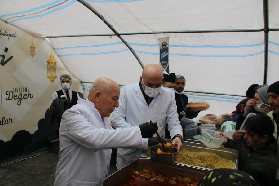 Erzurum Büyükşehir Belediye Başkanı Mehmet Sekmen, Ramazan ayı dolayısıyla Narmanlı Camii önünde kurulan iftar çadırını ziyaret etti. Başkan Sekmen, iftar saatinde vatandaşlara iftariyelik dağıtarak Ramazan sevincini paylaştı.