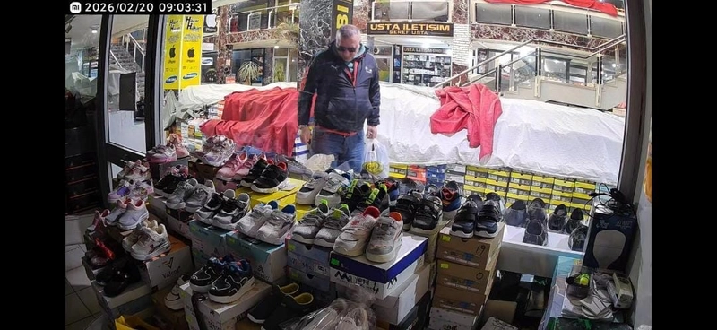 Üzerinden çıkarmadığı çalıntı montla bu kez bir ayakkabı mağazasına giren şüpheli, rahat tavırlarla ürünleri inceledi. Bir süre ayakkabı deneyen şahıs, çalışanın dikkatinin dağılmasını fırsat bildi.
