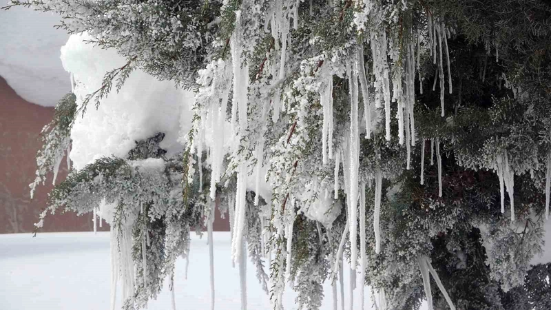 Soğuk havanın kendisini iyi hissettirdiği Bitlis’te, dondurucu hava şartları kenti adeta buzla kapladı. Kent genelinde binaların çatılarında oluşan buz sarkıtlarının yanı sıra ağaç dallarında bile buz sarkıtlarının meydana gelmesi dikkat çekti.