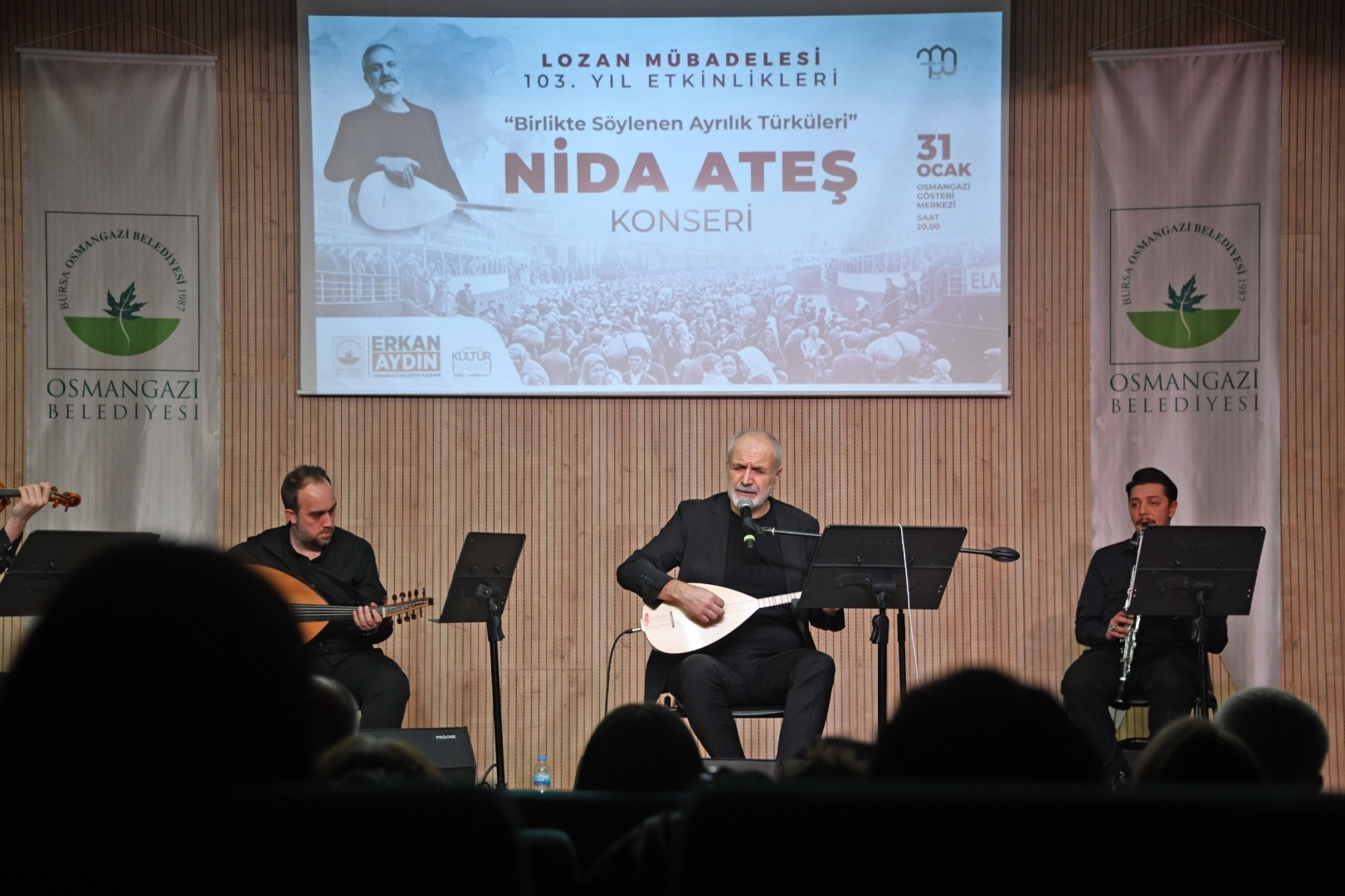 Göçlerin ve insan hikayelerinin türkülerini birlikte dile getireceklerini belirten Nida Ateş, “Hepimiz biliyoruz ki göç, dünyanın olduğu kadar ülkemizin ve şehirlerimizin de en önemli meselelerinden biri. 103 yıl önce büyük bir travma yaşayan insanların bugün artık çocukları ve torunları var. Ancak o sancılı sürecin izleri ve hatıraları, hala toplumsal hafızamızda varlığını sürdürüyor. Biz de bu konserde dilimiz döndüğünce, elimizden geldiğince o döneme ait yaşanmışlıkların türkülere dönüşmüş hallerini sizlerle paylaşmaya çalışacağız. Sadece ezgiler değil; o ezgilerin ardında kalan anekdotları, bilgileri ve duyguları da birlikte hatırlamak istiyoruz. Bu anlamlı geceyi bizlere sunduğu için Osmangazi Belediyesi’ne teşekkür ediyorum” ifadelerini kullandı.