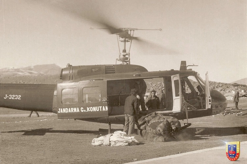 Jandarma Genel Komutanlığı, Van’ın Çaldıran ve Muradiye ilçelerini vuran 1976 depreminde kurtarma ve tahliye çalışmalarında görev yapan jandarma helikopterine ait tarihi görüntüleri, depremin 50’nci yılında kamuoyuyla paylaştı.