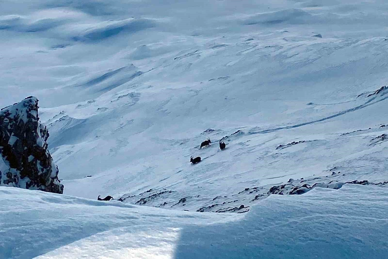 Gençler, yaylada yiyecek arayan ve nesli koruma altında bulunan dağ keçisi sürüsüne rastladı. Bölgede etkili olan yoğun kar yağışı, bu yaban hayvanlarının yüksek kesimlerden daha aşağı rakımlara, yiyecek bulmak amacıyla inmelerine neden olmuştu. Anları cep telefonu kameralarıyla ölümsüzleştiren gençler, bu doğal yaşam sahnesini kayıt altına aldı.