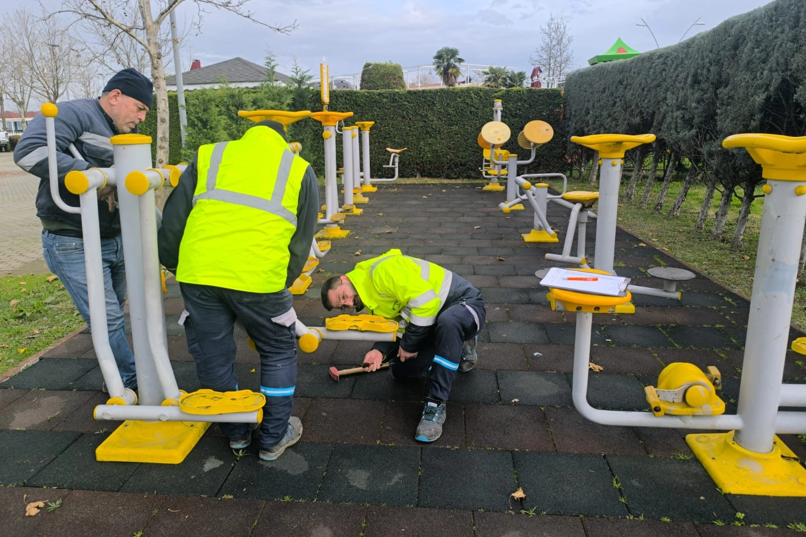 Zemin yapısına uygun şekilde kum serimi gerçekleştirilirken, yıpranan yumuşak zemin kaplamaları da yenileniyor. Ayrıca aydınlatma sistemleri kontrol edilerek arızalı olanlar onarılıyor.