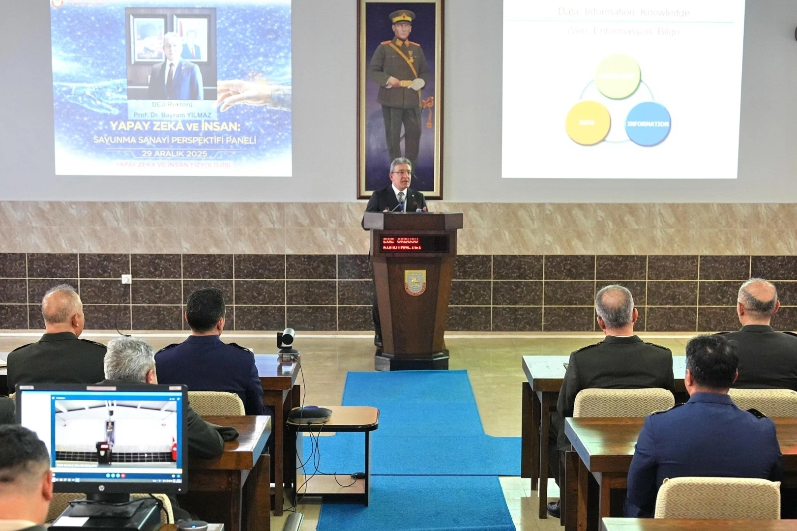 Panelin açılış sunumunu gerçekleştiren DEÜ Rektörü Prof. Dr. Bayram Yılmaz ise “Yapay Zekâ ve İnsan Fizyolojisi” başlıklı sunumuyla, yapay zekânın insan ve savunma sanayi üzerindeki etkilerine ilişkin değerlendirmelerde bulundu.
