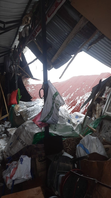 Selahattin Baş'a ait marketin çatısı, kuvvetli rüzgar ve kar yükü altında dayanamayarak tamamen çöktü. Çöküş, markette bulunan çok sayıda ürünün enkaz altında kalmasına neden oldu ve iş yeri kullanılamaz hale geldi.