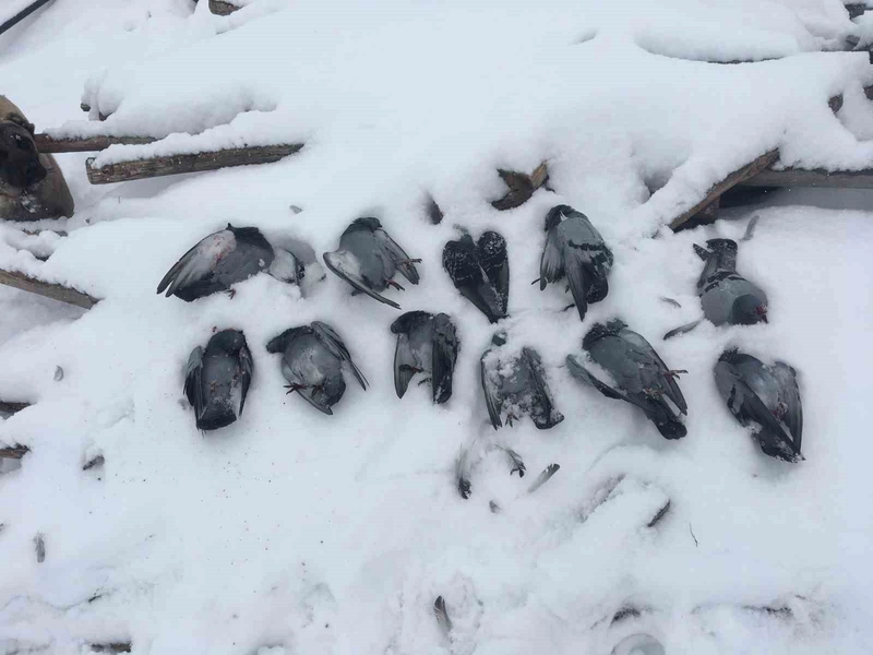 Soğuk hava dalgasının en acı sonuçlarından biri, merkeze bağlı Salkaya köyünde görüldü. Aşırı soğuklar nedeniyle onlarca güvercin donarak telef oldu.
