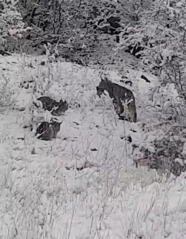 Kar üzerinde yakaladıkları kekliği yerken Kenan Çavundur tarafından görüntülenen vaşaklar, daha sonra ormanlık alana girerek gözden kayboldu. Bu nadir doğa olayının anları cep telefonu kamerasına yansıdı.