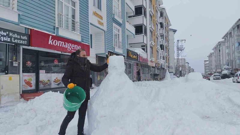 Esnaftan Emrah Gürbüz, arkadaşlarıyla birlikte yaklaşık 3 metre büyüklüğünde görkemli bir kardan adam yaptı. Gürbüz, "Uzun zamandır böyle bir kar yağmamıştı. Gerçekten böyle bir kara ihtiyacımız vardı. Bizler de işlerin olmayışını fırsat bilerek esnaf arkadaşlarla beraber karın yağışını eğlenceye çevirdik" diyerek yaşadıkları süreci anlattı.