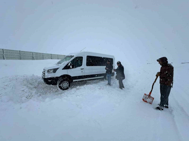 Yoğun kar ve rüzgarın etkisiyle bazı araçlar kara saplanarak yolda mahsur kaldı. İhbar üzerine bölgeye sevk edilen karla mücadele ve yol bakım ekipleri, zorlu koşullarda araçları bulundukları yerden çıkararak yol güvenliğini sağladı.