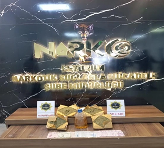 Erzurum'da Cumhuriyet Başsavcılığı koordinasyonunda düzenlenen operasyonda, İl Emniyet Müdürlüğü Narkotik Suçlarla Mücadele Şube Müdürlüğü ekipleri ve narkotik köpeği Magnum'un katılımıyla yapılan çalışmalar sonucu 7 kilo 300 gram skunk ve 2 kilo 150 gram metamfetamin ele geçirildi. Operasyonda ayrıca suç unsuru 24 bin 155 TL'ye de el konuldu.