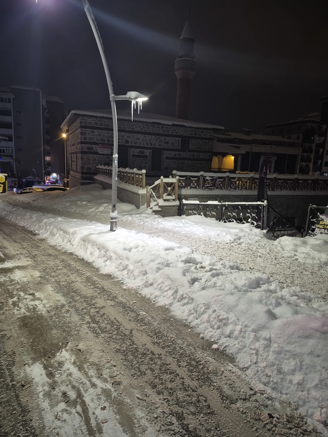 Şehir merkezinde çekilen görüntüler, Erzurum’un sert kış yüzünü bir kez daha gözler önüne serdi. Ayaz nedeniyle yollar cam gibi olurken, kaldırımlarda yürümek güçleşti. Vatandaşlar sabah ve gece saatlerinde zor anlar yaşarken, ortaya çıkan manzara adeta donmuş bir şehir görüntüsü oluşturdu.