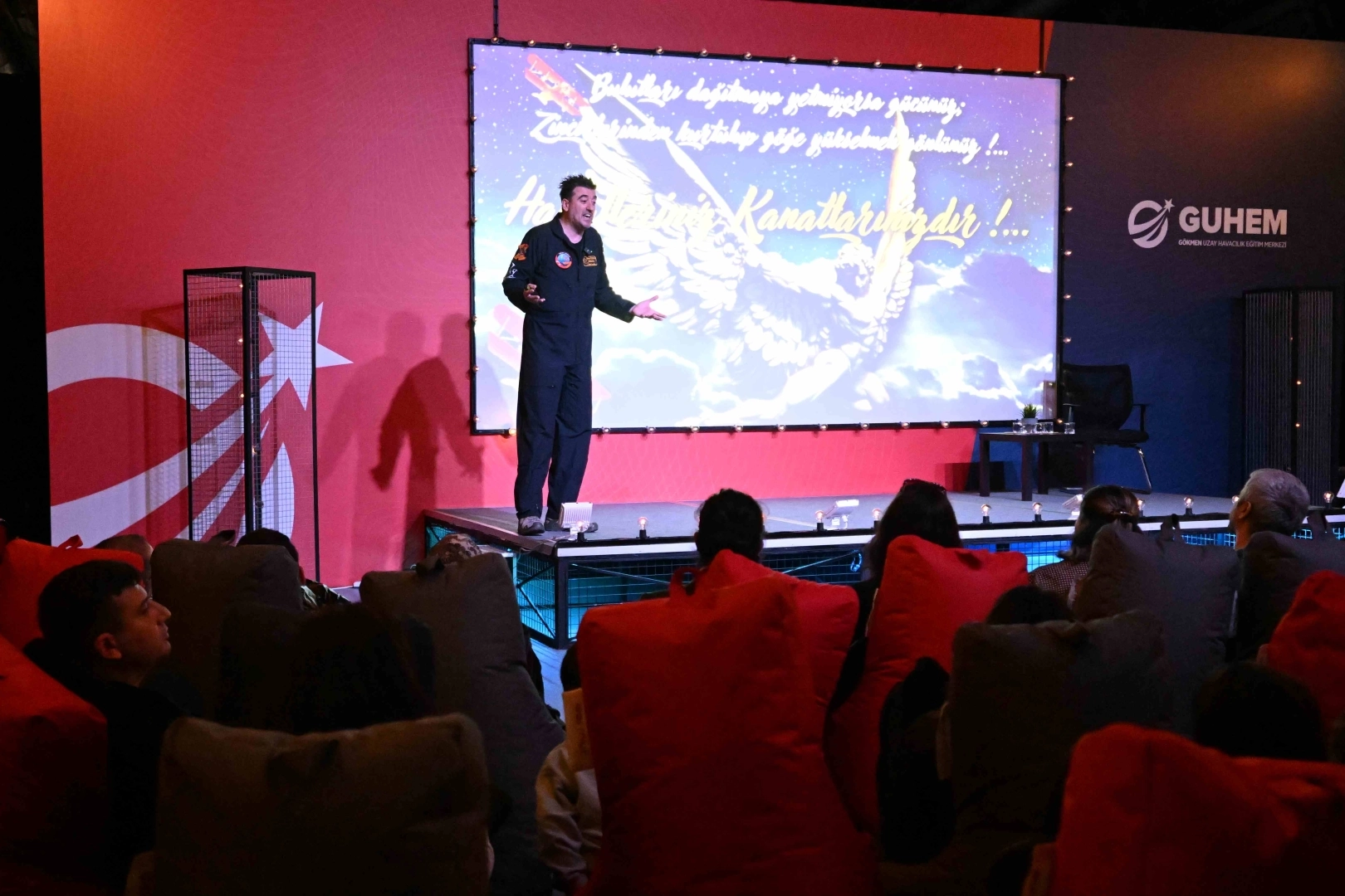 2012'de Kanada'daki International Test Pilot School'da eğitim aldığı dönemde NASA tesisleri ve Smithsonian Müzesi gibi dünyanın önde gelen merkezlerini gezdiğini anlatan Özpala, "O müzelerde hep 'Acaba Türkiye'de de çocuklarımız böyle imkânlara sahip olur mu?' diye düşünürdüm. Bugün GUHEM'de olmak, o hayalin somut bir karşılığını görmek gibi" ifadelerini kullandı.