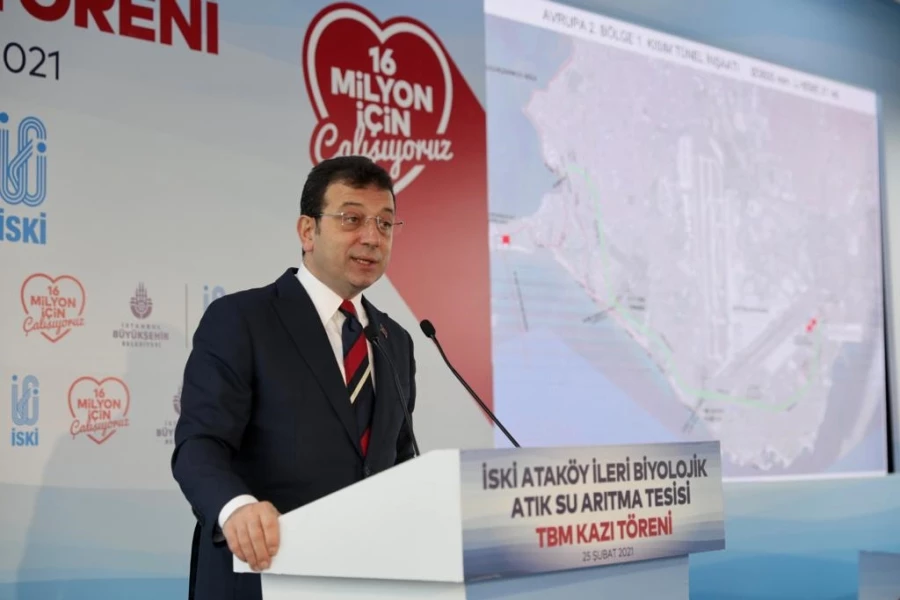 İstanbul Büyükşehir Belediye (İBB) Başkanı Ekrem İmamoğlu, İSKİ’nin Ataköy’de başlattığı atık su tüneli inşaatını gerçekleştirecek TBM cihazının yer altına indirilme törenine katıldı. Törende İmamoğlu’na; Bakırköy Belediye Başkanı Bülent Kerimoğlu, Küçükçekmece Belediye Başkanı Kemal Çebi ve İBB Sözcüsü Murat Ongun eşlik etti. Törende ilk konuşmayı yapan İSKİ Genel Müdürü Raif Mermutlu, yaklaşık 1,5 yıllık görev süresi boyunca yaptıkları çalışmalar ve hizmetlerden örnekler verdi. Şehrin 36 farklı noktasında kronik su baskını sorununu yaşayan bölgelerdeki problemleri çözdüklerini belirten Mermutlu, Marmara Denizi ve İstanbul Boğazı’na 72 farklı noktadan atık su girişine son verdiklerini aktardı.