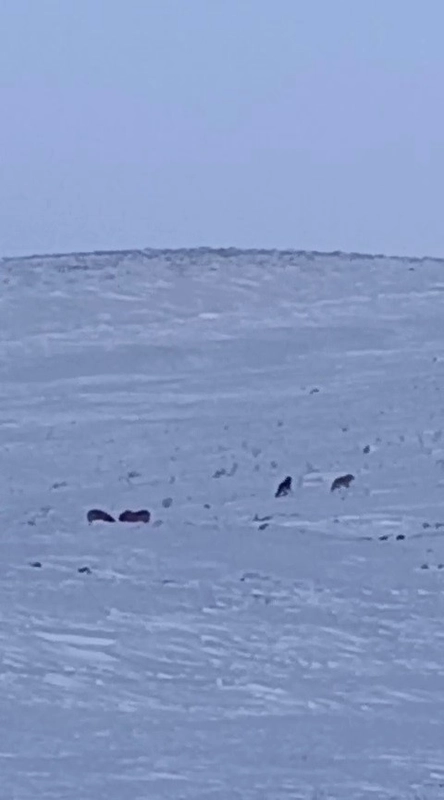 Saldırıya tanık olan anne köpek yavrusunu korumaya çalışsa da kurtların saldırısı karşısında başarılı olamadı.
