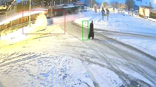 Kaza anı, bölgedeki güvenlik kameraları tarafından kaydedildi. Olayda yaralanan olmazken, araçta maddi hasar meydana geldi.