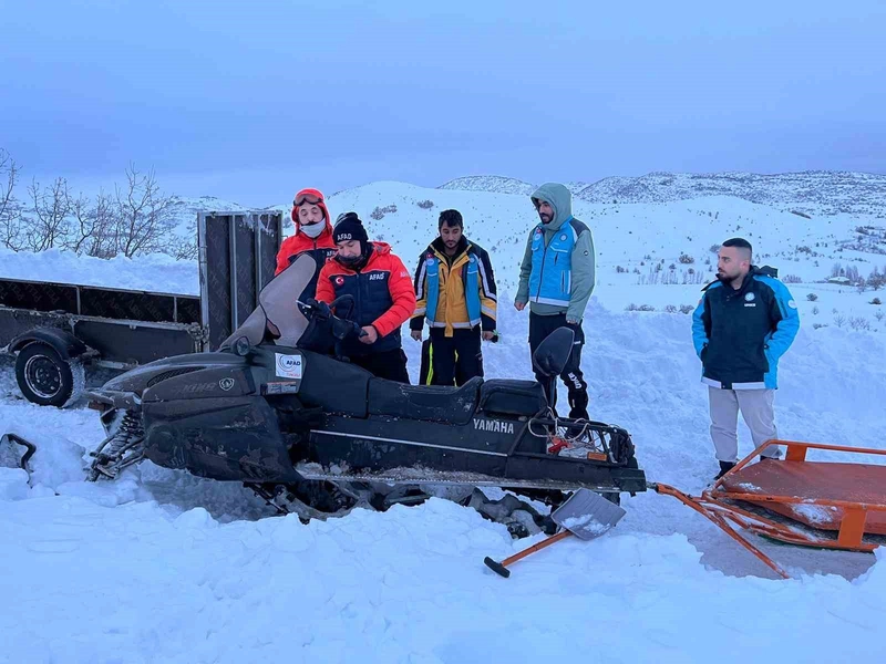 Zorlu ve yüksek rakımlı güzergahta AFAD arama kurtarma ekipleri kar motorlarıyla köye ulaşarak müdahaleyi başlattı. UMKE'den bir sağlık personelinin hastaya ulaştırılmasıyla ilk tıbbi müdahale yerinde gerçekleştirildi ve hastaya oksijen desteği sağlandı.