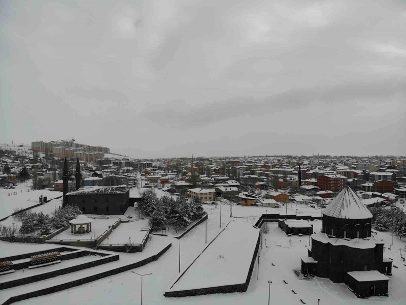 Tarihi dokusuyla bilinen Kars’ın beyaza bürünmüş hali dron kameralarına da yansıdı. Havadan çekilen görüntülerde, şehrin tamamen beyaz bir örtüyle kaplandığı, binaların çatılarının seçilemez hale geldiği görüldü. Kars Kalesi ve tarihi yapıların kar altındaki eşsiz manzarası, zorlu kış şartlarına rağmen görenleri büyüledi.