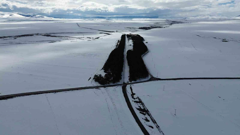 Bölgedeki geniş tarım arazileri de yoğun kar yağışından nasibini aldı. Bahar ekim sezonuna hazırlanan tarlalar, kalın kar tabakasıyla tamamen örtülerek adeta beyaz bir denizi andırdı. Havadan çekilen görüntülerde, karla kaplı arazilerin geometrik yapısı dikkat çekerken, doğanın sakinliği görenleri büyülüyor.