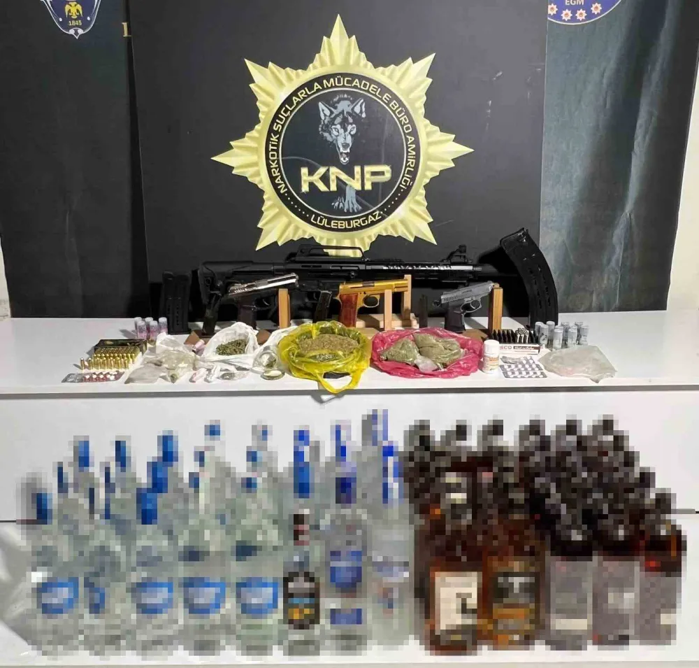 Lüleburgaz ilçesinde uyuşturucu madde ticareti yaptığı değerlendirilen hedef şahıslara yönelik gerçekleştirilen operasyonda 330,09 gram sentetik kannabinoid, 9,80 gram esrar, 23 adet sentetik ecza, 1 gram kokain, 2 adet ruhsatsız tabanca, 70 adet tabanca fişeği, 1 adet pompalı tüfek, 15 adet av tüfeği kartuşu, 27 şişe halinde 30,2 litre gümrük kaçağı rakı, 28 şişe halinde 28 litre gümrük kaçağı viski ile 1 adet kuru sıkı tabanca ele geçirildi.