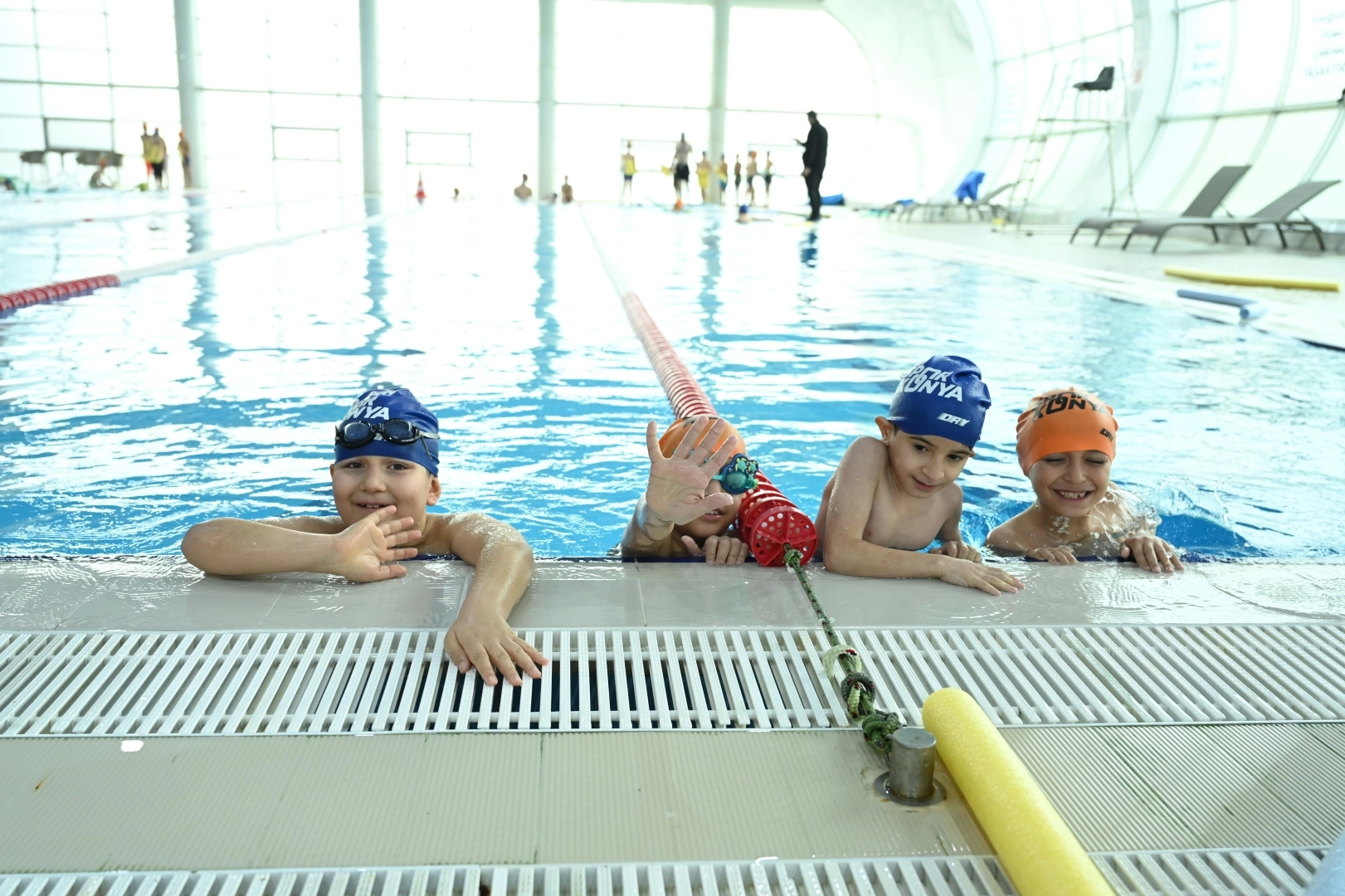 KONYA (İGFA) -Konya Büyükşehir Belediyesi’nin İl Milli Eğitim Müdürlüğü iş birliğinde yürüttüğü “Yüzme Bilmeyen Kalmasın” projesi kapsamında Meram, Karatay, Altınekin, Akören, Bozkır, Beyşehir, Cihanbeyli, Çumra, Doğanhisar, Emirgazi, Güneysınır, Hüyük, Kadınhanı, Kulu, Sarayönü, Seydişehir, Tuzlukçu, Ereğli, Akşehir ve Karapınar olmak üzere 20 ilçede ilkokul üçüncü sınıf öğrencilerine verilen yüzme eğitimleri devam ediyor.