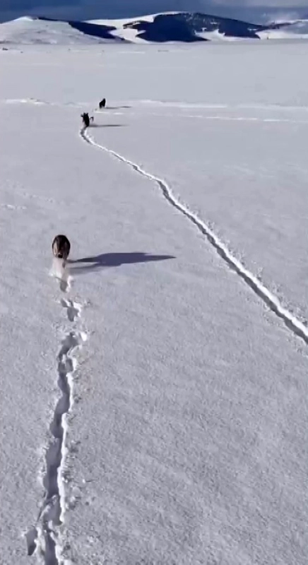 Kar kalınlığının yer yer yarım metreyi aştığı Ardahan’ın Göle ilçesinde yiyecek arayışına çıkan kurtların temkinli ancak kararlı adımlarla ilerlediği görüldü. Sürü halinde hareket eden kurtlardan birinin ağzında büyükçe bir kemik taşıdığı dikkat çekti.