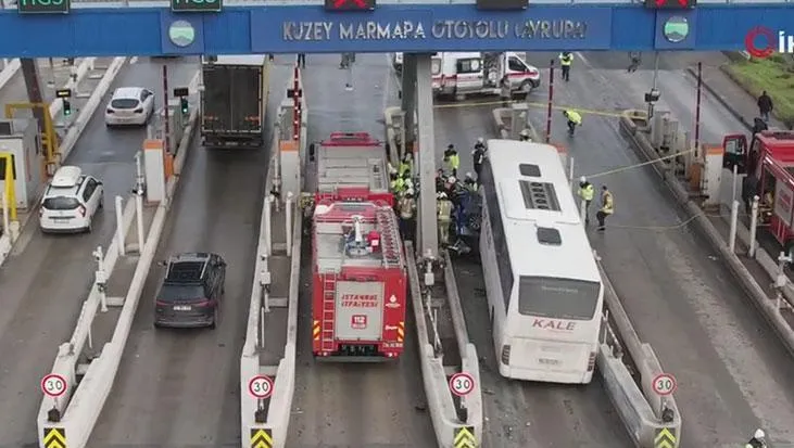 Edinilen bilgilere göre, Silivri sınırlarında bulunan Kınalı Gişeleri’nden geçiş yapan otomobile, aynı istikamette seyreden yolcu otobüsü arkadan çarptı. Çarpmanın şiddetiyle otomobil, gişe ile otobüs arasında sıkıştı.