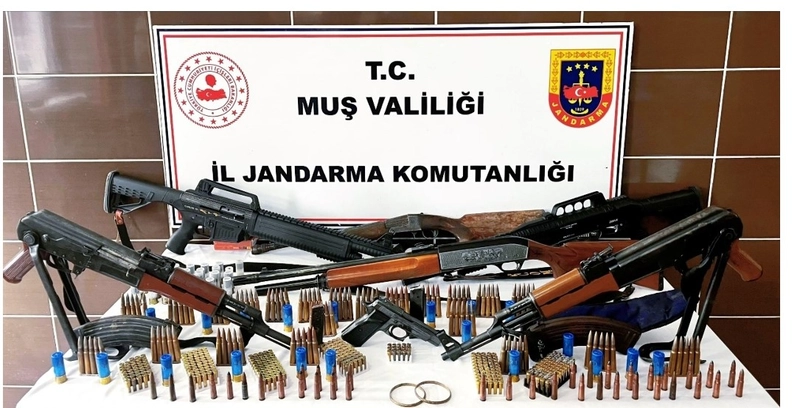 Edinilen bilgilere göre, Muş İl Jandarma Komutanlığı tarafından yürütülen çalışmalarda Malazgirt ilçesinde 6136 Sayılı Ateşli Silahlar ve Bıçaklar ile Diğer Aletler Hakkında Kanun, 2521 Sayılı Avda ve Sporda Kullanılan Tüfekler Hakkında Kanun ve 2863 Sayılı Kültür ve Tabiat Varlıklarını Koruma Kanunu’na muhalefet suçlarından 7 şüpheliye ait 7 farklı adreste arama gerçekleştirildi. Şüphelilerin ikametlerinde yapılan aramalarda 2 adet Kalaşnikof marka silah, 1 adet ruhsatsız tabanca, 4 adet ruhsatsız av tüfeği, 341 adet 9 mm tabanca mühimmatı, 117 adet av tüfeği mühimmatı, 456 adet Kalaşnikof mühimmatı, 115 adet mavzer mühimmatı, 2 adet 7.62 mm piyade tüfeği mühimmatı, 3 adet av tüfeği şarjörü, 9 adet Kalaşnikof şarjörü, 2 adet tabanca şarjörü ile tarihi eser niteliğinde 2 obje ele geçirildi. Operasyonda ele geçirilen silah, mühimmat ve tarihi eser niteliğindeki objelere el konulurken, olayla ilgili tahkikat başlatıldı.