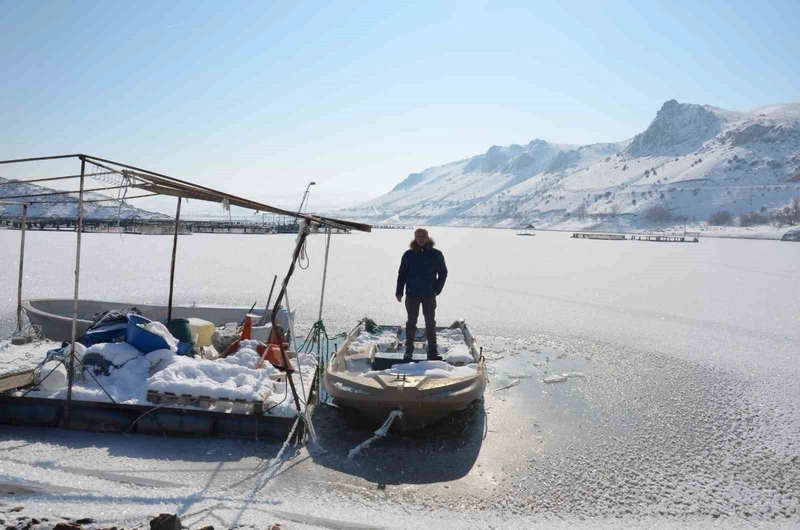 Erzincan’ın Otlukbeli ilçesinde hava sıcaklığı eksi 22,1 dereceye düşerken dondurucu soğuklar etkisini artırdı.
