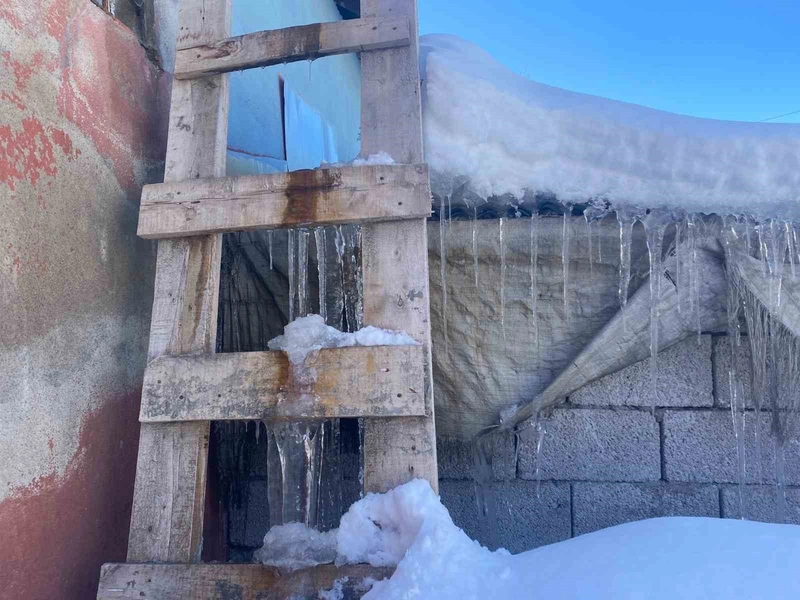 Ağrı’nın Patnos ilçesinde etkili olan kar yağışının ardından don meydana geldi, çatılarda buz sarkıtları oluştu.