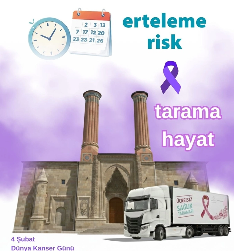 Erzurum İl Sağlık Müdürlüğü, Dünya Kanser Günü vesilesiyle vatandaşları ücretsiz sağlık taramalarını yaptırmaya çağırdı. Forum AVM ve MNG AVM'de kurulan stantlarda, hem taramalar yapılacak hem de sağlıklı yaşam alışkanlıkları konusunda bilgilendirme gerçekleştirilecek.