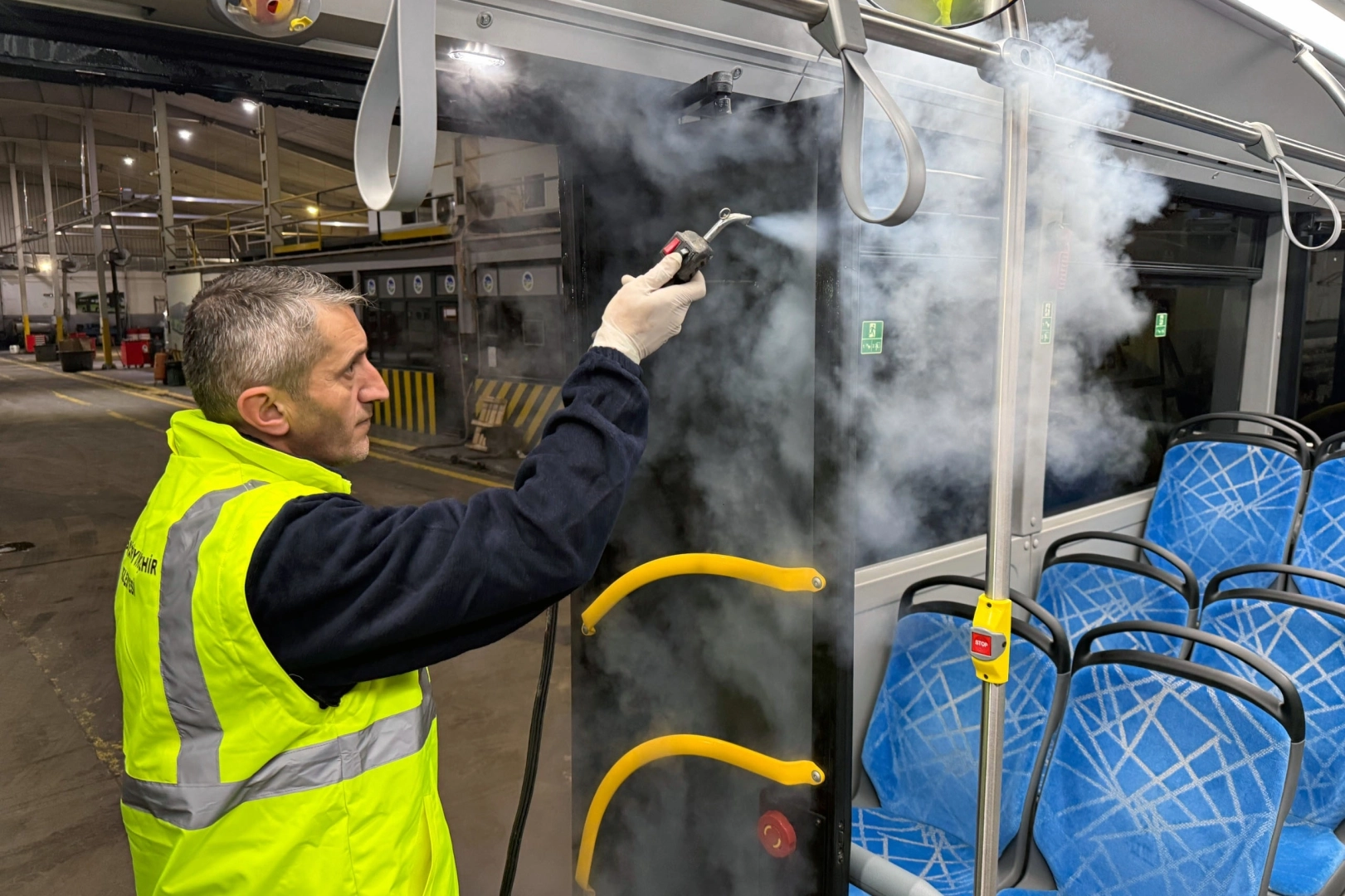 Ulaşım hizmetlerinin sabahın ilk ışıklarından gecenin geç saatlerine kadar süren yoğun temposu, temizlik ekiplerinin gece boyunca yürüttüğü titiz dezenfeksiyon çalışmalarıyla tamamlanıyor. Şehrin dört bir yanında yolcuların temas ettiği tutacaklar, koltuklar, kapı girişleri ve tüm yüzeyler özel tekniklerle sterilize ediliyor. Dezenfeksiyonun ardından araçlar havalandırılarak iç mekân hava kalitesi artırılıyor ve otobüsler yeni güne tamamen hijyenik bir şekilde hazırlanıyor.