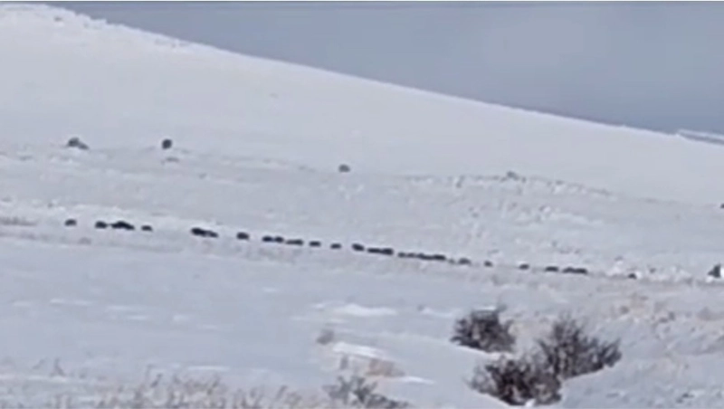 Bitlis’in Tatvan ilçesine bağlı Kıyıdüzü ve Sarıkum köyleri kırsalında, karlar arasında ilerleyen büyük bir domuz sürüsü görüntülendi. Seyir halindeki köylüler tarafından kaydedilen görüntüler, bölgede yaşanan ilginç bir doğa olayını belgeledi.