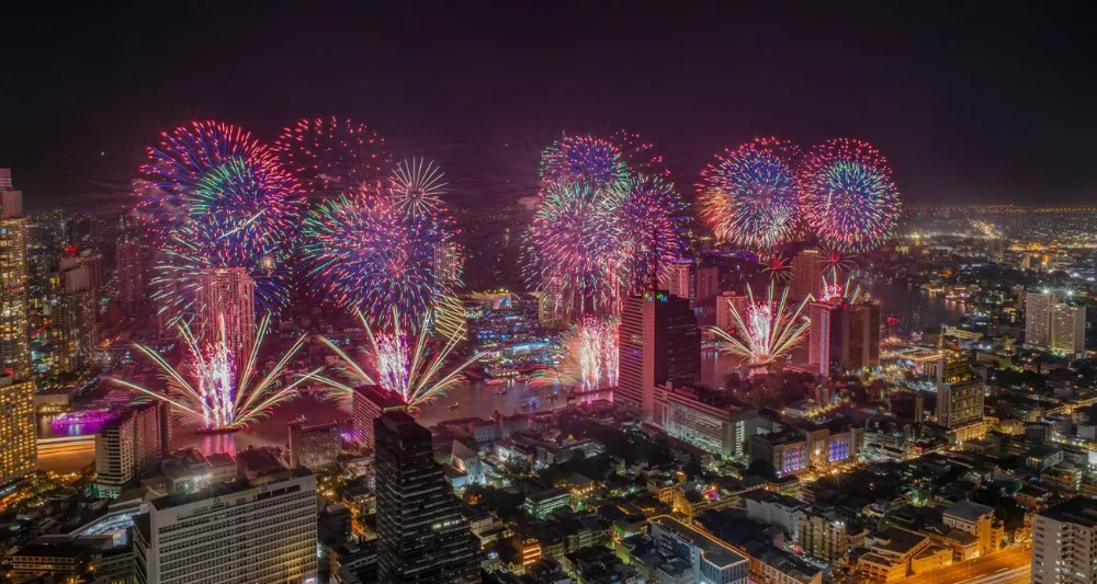 Bangkok'ta özellikle Chao Phraya Nehri üzerinde yer alan ICONSIAM, Asiatique ve Wat Arun (Şafak Tapınağı) ile Sukhumvit Caddesi üzerinde bulunan Central World ve Khaosan Sokağı'nda kutlama alanları tamamen doldu. Yerel saatler 00.00'ı gösterdiğinde başkentin gökyüzü, düzenlenen havai fişek ve ışık gösterileriyle renkli görüntülere sahne oldu.