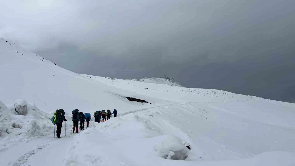 Bitlis’in Adilcevaz ilçesinde 12 dağcı, tipi ve kar yağışı nedeniyle Süphan Dağı zirve tırmanışını tamamlayamadı.
