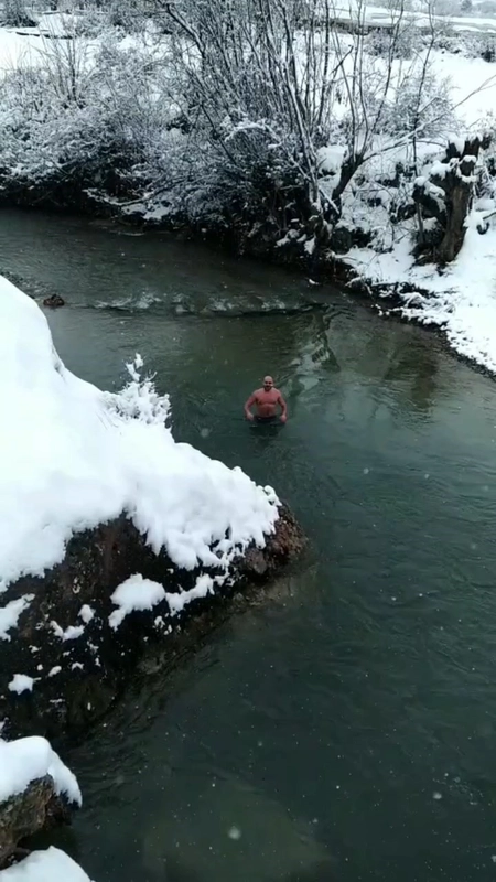 Aynı çayın başka bir noktasında ise yöredeki gençler, soğuk havaya ve kara aldırış etmeden buz gibi suya girdi. Zorlu kış şartlarına rağmen Tağar Çayı'nda yüzmeleri, alışılmışın dışında bir görüntü oluşturdu.