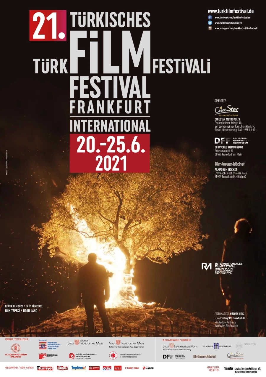 21. Uluslararası Frankfurt Türk Filmleri Festivali 20-25 Haziran 2021 tarihleri arasında gerçekleştirilecek. Festival geçen sene olduğu gibi, bu sene de uzun metraj, belgesel ve Üniversiteler arası kısa metraj dallarında çekilen filmlere ev sahipliği yapacak. Pandemi nedeniyle yapılamayan 2020 festivalinin ödülleri 22 Haziran 2021 tarihinde yapılacak galada sahiplerine teslim edilirken, 2021 yılı festivalinin ödülleri ise 25 Haziran 2021 tarihinde düzenlenecek kapanış galasında sahiplerini bulacak.