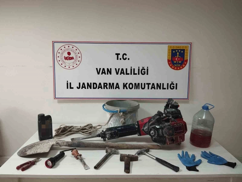 Şüphelilerle birlikte, kazıda kullanılan çok sayıda malzemeye el konuldu. Ele geçirilen eşyalar arasında 1 adet benzinli kırıcı, 1 adet kürek, benzin ve motor yağı, 3 adet çekiç, 1 adet murç, kova, el feneri, pense, eldivenler ve 10 metre uzunluğunda bir ip bulunuyor. Tüm bu malzemeler muhafaza altına alındı.