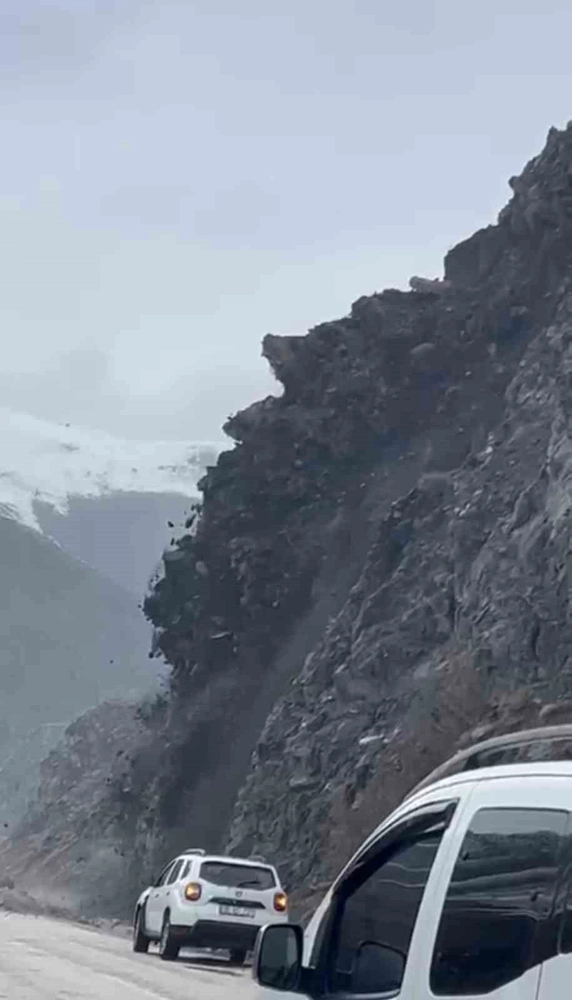 Yüksekova-Van kara yolunda sağanak yağış sonrası meydana gelen heyelan büyük korkuya neden olurken, toprak yığınlarının yola indiği anlar kayıt altına alındı.