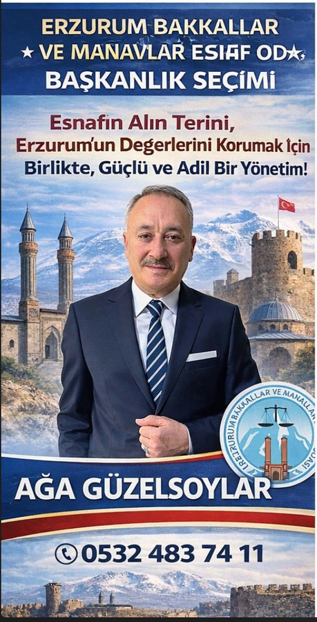 Erzurum Bakkallar ve Manavlar Esnaf Odası başkan adaylığını açıklayan Ağa Güzelsoylar,tüm üye esnafın oylarına talip olduğunu söyledi.