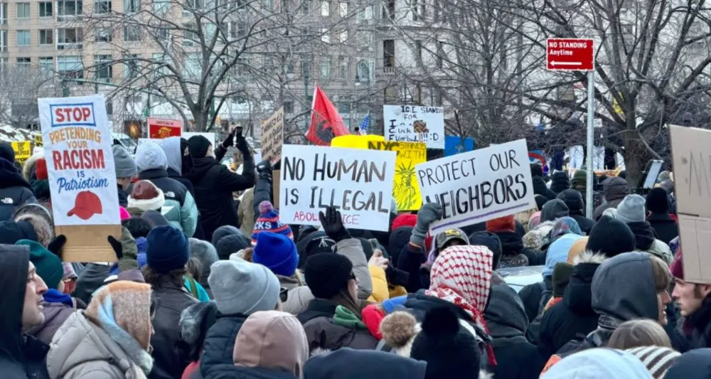 ABD genelinde her eyalette binlerce kişi, ABD Başkanı Donald Trump yönetiminin göçmenlik politikaları ve ICE faaliyetlerine tepki göstermek amacıyla "iş yok, okul yok, alışveriş yok" çağrısıyla ülke çapında protestolar düzenlerken, New York’ta soğuk havalara rağmen yaklaşık 7 bin kişi Foley Meydanı’ndan toplandı.