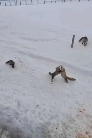Karayolları personeli tarafından beslenen tilkiler, kendi aralarında ekmek kapma kavgasına tutuştu. Uzun süre devam eden bu mücadele, tilkilerin verilen yiyecekleri yemeye başlamasıyla son buldu.