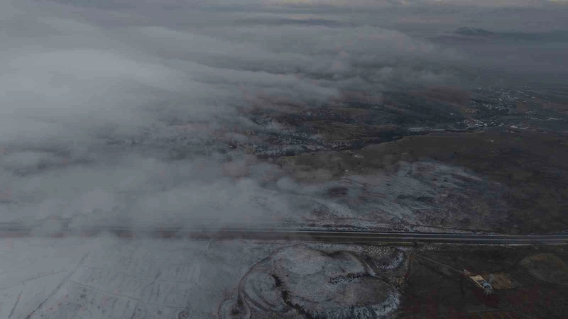 Sabah saatlerinde dron ile havadan görüntülenen Harput Mahallesi ve merkeze bağlı Nuralı Köyü, alışılmadık tablolar ortaya koydu. Görüntüler, aynı rakımda bulunmalarına rağmen bazı bölgelerin karla kaplandığını, bazı alanlarda ise karın hiç tutmadığını gözler önüne serdi. Sadece birkaç yüz metre arayla kar, yoğun sis ve karsız açık alanlar aynı karede buluşarak dikkat çekici bir atmosfer yarattı.
